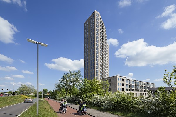 Woonkwaliteit en uitstraling waren uitgangspunt en zijn meegenomen in een slim bouwsysteem, leggen ze verder uit. “Zo is het bijvoorbeeld gelukt de woontoren volledig steigerloos op te bouwen. Dit heeft de bouwtijd en vooral ook de afbouwtijd enorm verkort.”