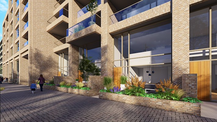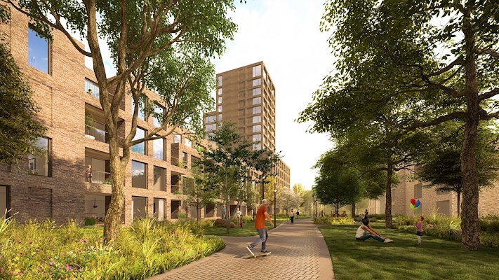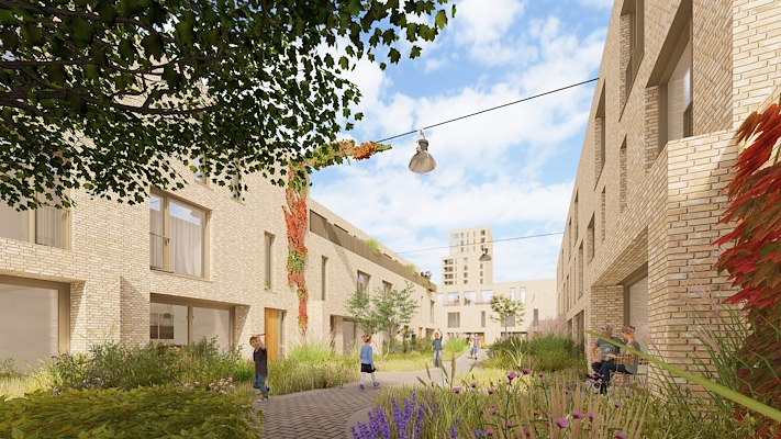 Het plan voor de woonwijk omvat 307 woningen, verdeeld over grondgebonden eengezinswoningen en appartementen in zowel het sociale huur- als het koopsegment. In de dubbele plint komt een aanvullend programma.