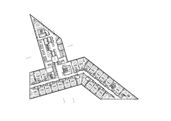 De overige verdiepingen zijn bestemd voor met name de hotelkamers. Vanuit het atriumachtige monumentale trappenhuis strekken zich drie gangen naar buiten; daardoor hebben de ruim 230 kamers alle uitzicht. Het spa- en wellnesscentrum van het hotel bevindt zich in de hoek van de bovenste verdieping, met een driehoekig zwembad dat uitzicht biedt op de stad.
