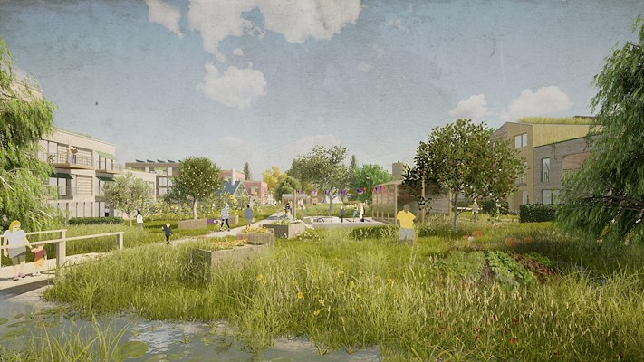 Voorstel voor drijvende, klimaatadaptieve en inclusieve wijk in Rijnhaven Rotterdam