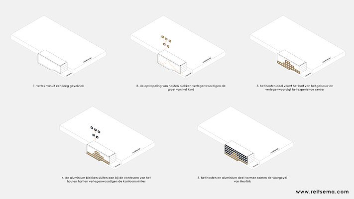 Het experience center is opgebouwd uit grote houten blokken, die symbool staan voor de groei van het kind. Het trappenhuis is speels en open ontworpen en biedt samen met de vide zicht op alle vijf verdiepingen. Rondom het trappenhuis zijn formele en informele ontmoetingsplekken gecreëerd; door deze ‘rumoerige’ functies zo te positioneren, ontstaat rust op de andere werkplekken.