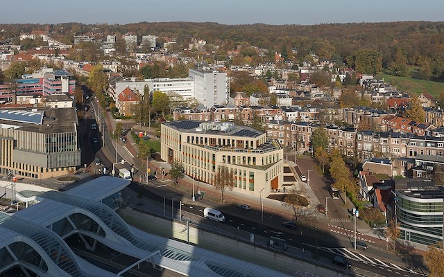 , vormt een scharnier tussen het station en de achtergelegen Burgemeesterswijk.