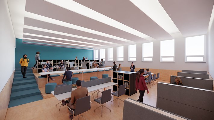 Bovendien krijgt het gehele complex hiermee een menselijke maat, legt het bureau verder uit. “Wel een grote school, maar in een overzichtelijke verzameling van kleinere blokken.”