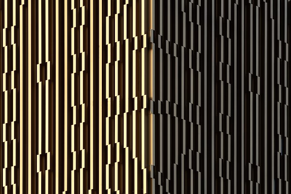 De gevel bestaat uit aluminium lamellen, waarin bloemvormen zijn uitgesneden die refereren aan de decoratieve tralievensters in de oude binnenstad van Tainan. De lamellen filteren het licht en houden de tropische warmte buiten. Dankzij de getrapte vorm biedt het gebouw beschutting aan de bezoekers en verloopt de overgang van binnen naar buiten geleidelijker.
