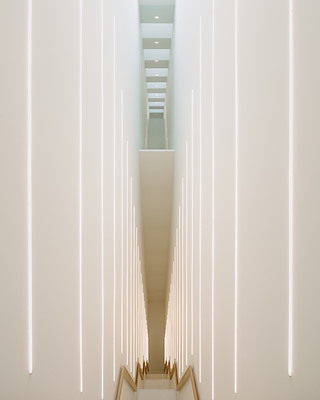 Belangrijk bij het herstel van die opeenvolging van ruimtes was om alle functies, die in de tussentijd in de entreehal een plek hadden gekregen, er nu omheen een plek te geven. De garderobe en groepsentree liggen een niveau lager, net als bij theaters vaak het geval is, in een filmische, witte wereld. De winkel en het café liggen nu aan weerszijden van de entreehal, uitermate logisch. De oude ticketbooths in de entreehal zijn in ere hersteld, waarbij er eentje subtiel verlaagd is om ook bezoekers ‘met een wiel’ te kunnen bedienen. Het eindresultaat is een serene entreehal, zoals die ook ooit bedoeld was. Met een online gekochte ticket kun je in basis direct doorlopen, het museum in.