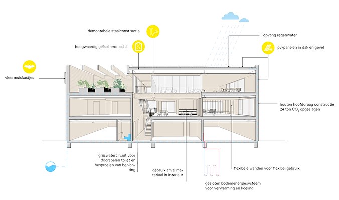 -voetafdruk, legt WRK Architecten uit. Het betekent een kleinere schil en een optimalisatie van structuur en bouwsysteem. Daardoor kunnen ook bouwkosten substantieel worden gereduceerd en kan met minder middelen een aangenaam binnenklimaat worden bereikt, aldus het architectenbureau.