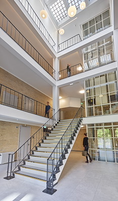 Overal in het gebouw zijn oorspronkelijke details hersteld. Op sommige plekken zijn historische elementen opnieuw zichtbaar gemaakt en vervolgens gecombineerd met eigentijdse interieurelementen en moderne voorzieningen. Het ingetogen kleurpalet met hier en daar accenten werkt daarbij versterkend, leggen de architecten uit.