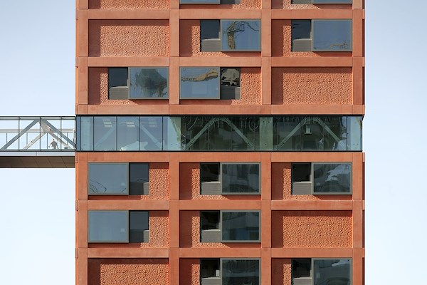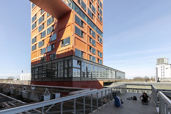 ontworpen gebouw bestaat uit 182 woningen, die zijn verdeeld over een zeventig meter hoge toren en een over de naastgelegen skatehal uitstekend brugdeel. Door zowel visueel als letterlijk een verbinding aan te gaan met de panden ernaast, wil VMX de fysieke verbindingen die vroeger op het terrein aanwezig waren herstellen.