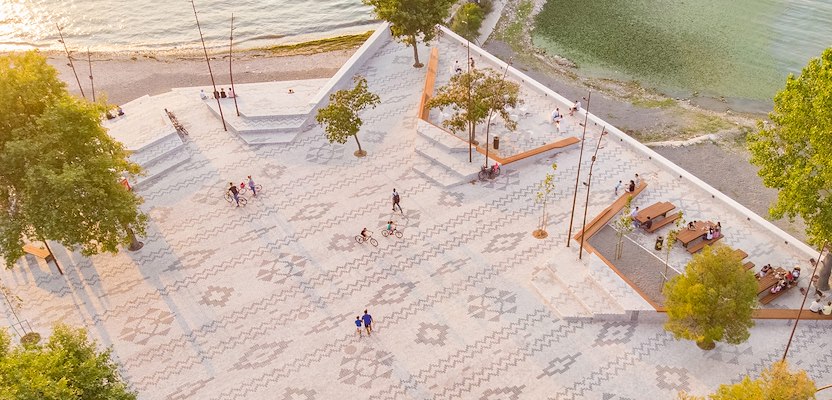 het waterfront van het Albanese vissersdorp Shirokë vernieuwd. Langs de oevers van een meer waar sinds de periode van het communisme verschillende illegale bouwwerken waren neergezet, is een boulevard aangelegd die een nieuwe publieke ruimte voor de inwoners van het dorp vormt.