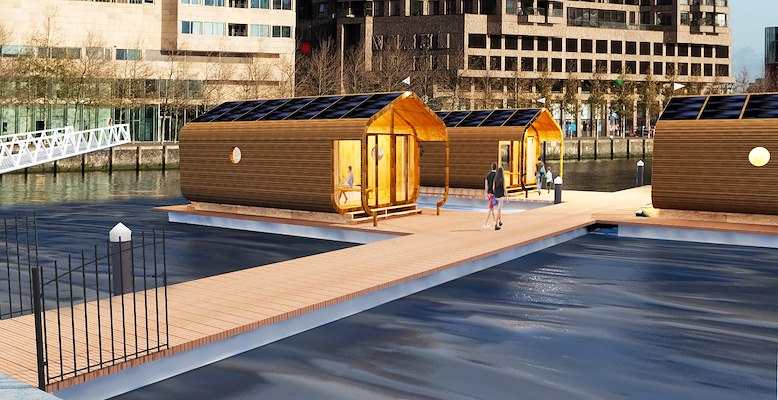 In de Rotterdamse Rijnhaven komen vier zogenoemde Wikkelboats te liggen. De duurzame en drijvende ‘tiny houses’ kunnen overdag als werk- of ontmoetingsplek dienen en ’s avonds worden verhuurd voor overnachtingen.