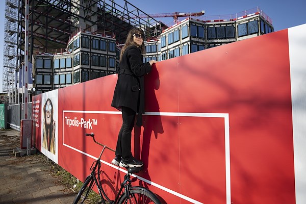 “Dit doet me pijn”, zegt curator Jorn Konijn terwijl hij kijkt hoe bouwkranen rond het gestripte Tripolis-complex een gigantische flat optrekken. Het in 1994 door Aldo en Hannie van Eyck ontworpen bedrijfsverzamelcomplex, strategisch gelegen op de rand van de Amsterdamse Zuidas, wordt door FLOW development herontwikkeld tot een ‘eco-bewuste’ campus voor taxibedrijf Uber. Designed with the guiding principle of protecting and embracing the existing, iconic Tripolis buildings, staat op de schutting rond de bouwplaats. Het ontwerp van MVRDV omarmt het complex letterlijk, met die metershoge muur. Van Eyck-liefhebber Konijn vindt dat het gebouw wordt “overmeesterd”.
