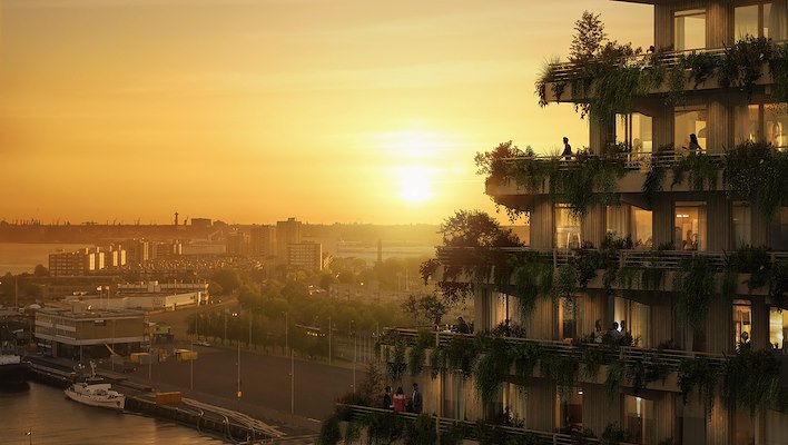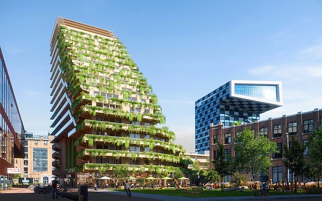 Nieuwe impressies van volledig houten woongebouw op Lloydpier