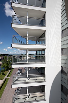 Wel heeft het architectenbureau de binnenruimte richting gegeven met grote balkons aan de westzijde, de kanaalzijde. Die oriëntatie maakt wonen op het westen en slapen op het oosten voor de hand liggend, aldus de architecten. Voor de verdere indeling van de woningen konden belangstellenden al in de ontwerpfase met de architecten aan tafel om invulling te geven aan hun wensen.