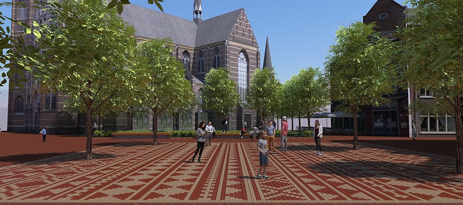 In de lokale kunst en architectuur wordt deze combinatie van kleuren eveneens veel gebruikt, zo verklaren de twee bureaus. De bestrating zorgt op die manier voor samenhang, bijvoorbeeld met het voormalige raadhuis.