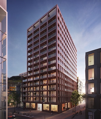 , die naar ontwerp van OZ, BETA, Space Encounters en wederom LOLA Landscape wordt getransformeerd naar woningen en commerciële functies. De toren krijgt een rode betonnen siergevel met grote openingen, die verdiepinghoge ramen en riante buitenruimtes voor de bewoners mogelijk maken.