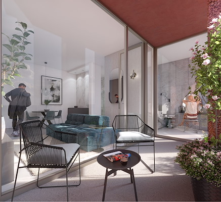 HOH Architecten presenteert hoekgebouw en binnentuin kavel 6 Oostenburg
