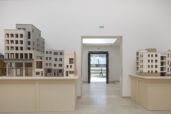 De maquettes hebben een schaal van 1/15. Ze zijn opgesteld op tafelhoogte en representeren een lineair, kronkelend landschap van een typisch Vlaamse stedelijke omgeving, zo meldt het VAi.