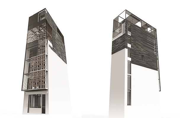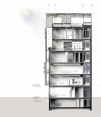 Het startpunt voor Archi-Tectonics, het bureau van de Nederlands-Amerikaanse architect Winka Dubbeldam, was een bestaand woongebouw in SoHo, een buurt in Lower Manhattan. Het gebouw is naar boven uitgebreid met een constructie van vier verdiepingen. Vervolgens is de gehele voorzijde voorzien van een tweede huid uit lichtgewicht staal en vouwpanelen, bekleed met latten.