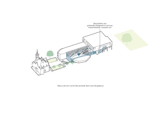 EGM heeft het bestaande gebouw met de renovatie ruimtelijkheid en openheid gegeven; zowel het exterieur als interieur is strak en modern. De onbenutte buitenruimte is overkapt en omgevormd tot een nieuw binnenplein: een atrium voor ontmoeting en feestelijke bijeenkomsten.