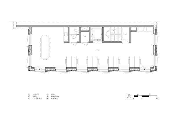 Het gebouw heeft een vrije vloerhoogte van bijna vier meter en is voorzien van raampartijen die bijna net zo hoog zijn. De gevels en open plattegronden zijn bewust zo ontworpen dat het gebouw in de toekomst ruimte biedt voor verschillende wijzen van gebruik, indelingen en/of gebruikers.