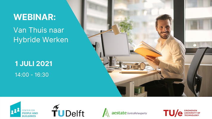 ‘Hybride werken’ behoort mogelijk tot de toekomst van kantoorhoudende organisaties. Over deze werkvorm organiseren Aestate/Ontrafelexperts, het Center for People and Buildings (CfPB), TU Delft en TU Eindhoven een online evenement op donderdag 1 juli.
