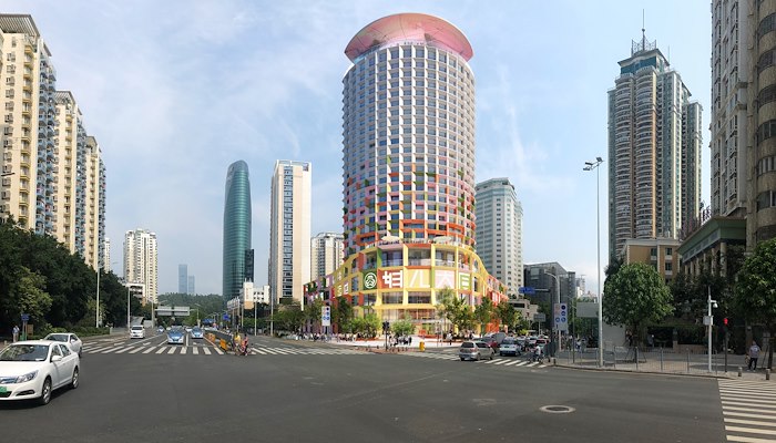 De nieuwe kleurrijke gevel en groene daken zullen de toren tot een verfrissende verschijning in het Futian-district van Shenzhen maken, onderscheidend ten opzichte van de andere hoogbouw. De diepere gevel is niet alleen esthetisch, maar ook functioneel; hij zorgt voor extra zonwering, wat een gebouw in het hete klimaat van deze Chinese stad goed kan gebruiken.
