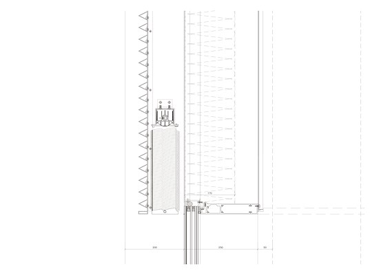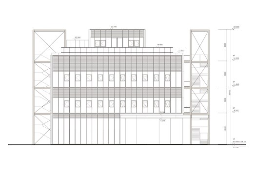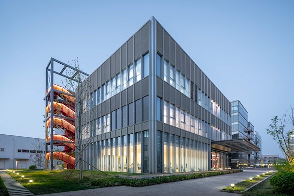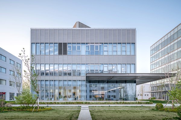 Superimpose heeft de gevel van het gebouw ontworpen als een cassettesysteem om aanpasbaarheid te combineren met een sterk en herkenbaar architectonisch voorkomen, dat past in de industriële context van Shunyi. In deze gevelcassettes zijn binnenzonwering, buitenzonwering en elektrochroom glas voor een ‘on-demand’ variatie in zonwering en glaskleur geïntegreerd.