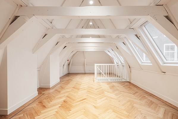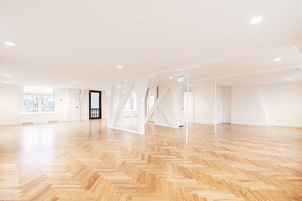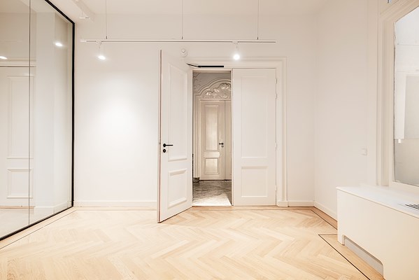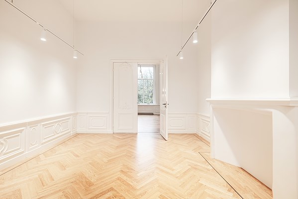 De bestaande houten vloeren zijn licht opgeschuurd, hersteld en opnieuw gelakt. De overige ruimten, met uitzondering van het souterrain en de kapverdieping, zijn voorzien van vergelijkbare parketvloer met visgraatmotief en bies.