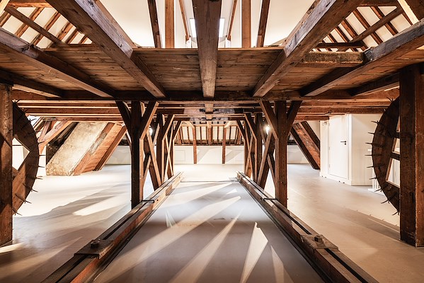 Achter de lambrisering bleken op verschillende plekken oud-Hollandse handgemaakte tegeltjes, zogenoemde witjes, verstopt. Die zijn hersteld en waar nodig aangevuld; de schakeringen in wit die dat heeft opgeleverd vormen een interessante mix van oud en nieuw, zegt Hollandse Nieuwe. Ook de bovenste verdiepingen zijn open gemaakt; een extra trap verbetert de toegang.