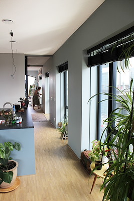 In een van de panoramawoningen, waar het zoals de naam doet vermoeden vooral om panoramisch zicht gaat, is de panoramagedachte radicaal doorgezet door alle gesloten functies tegen de kern te plaatsen. Op die manier kon de 26 meter lange gevel vrij worden gehouden.