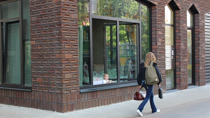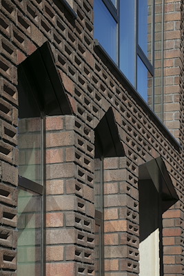 De woningen zijn in de gevel afleesbaar dankzij de verschillende maten en de variërende compositie van de gevelopeningen. Het gebruik van klamp metselwerk geeft het gebouw meer body en versterkt het expressieve karakter.