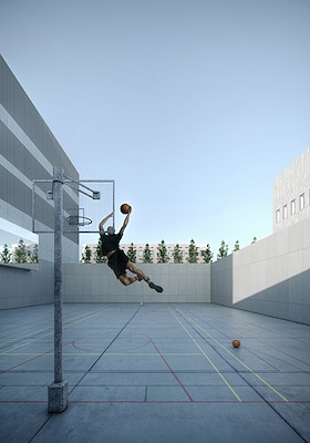 Dat vertaalt zich in een complex dat als het ware is ontworpen als een deel van de stad, met pleinen, straten en veel groen. De gedetineerden wandelen door de buitenlucht van activiteit naar activiteit, waardoor de buitenruimte ook echt onderdeel van het dagelijks leven wordt, in plaats van vooral een decoratieve achtergrond, verklaart Hootsmans. Het terrein van het verblijfsgedeelte wordt vier meter verhoogd ten opzichte van het maaiveld, zodat de muur minder prominent aanwezig is voor de gedetineerden.