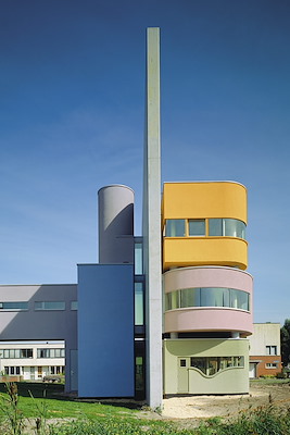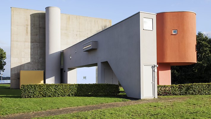 Een 18,5 meter brede en 14 meter hoge muur vormt het centrale en meest opvallende element van het gebouw. Hieraan zijn aan een kant verschillende ruimtes opgehangen, bestemd als slaap-, woon- en eetkamer, alle gevat in speelse en opvallend gekleurde volumes. Aan de andere kant van de muur zijn de entree, een loopbrug en een kantoor gesitueerd.