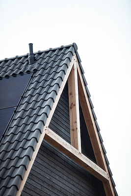 De variatie in goothoogtes maakt het beeld van de woningen divers en de overstekken zorgen voor een plezierige overgang tussen de private woning en het openbare erf, aldus Pauwert Architectuur.