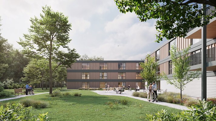 , gespecialiseerd in modulair bouwen, een nieuw zorgcomplex. Het ontwerp van het complex is gemaakt door