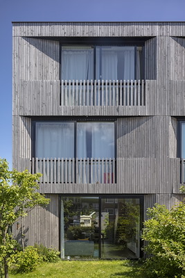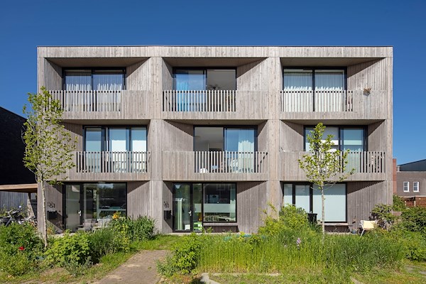 bvo per woning. Aan de buitenkant ogen ze nagenoeg identiek. Enkel de raamindelingen verschillen, doordat die zijn afgestemd op de indeling van de afzonderlijke woningen.