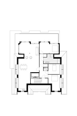 Aan de voorzijde heeft het bestaande pand weer het karakter van een woonhuis gekregen, leggen de architecten uit. De kantooruitstraling uit de jaren zestig van de vorige eeuw is teruggedraaid door de oude gevelopeningen op een abstracte manier terug te brengen in combinatie met het terugbrengen van de balkons.