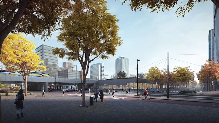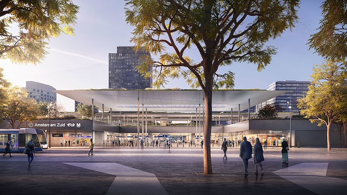 Impressie van het toekomstige station Amsterdam Zuid, tramhalte