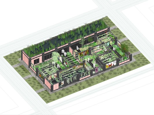 Deze bouwmaterialen zijn afkomstig van Amsterdamse lisdodde, Almeerse vezelhennep, en kalk van oesters uit Zeeland en uit het drinkwater van Amsterdam. Het winnende plan behelst een paviljoen met bijbehorende tuin. Het paviljoen bestaat uit een overdekt deel en tuinkamers, waarin onder meer de planten worden getoond die voor de bouw zijn gebruikt.
