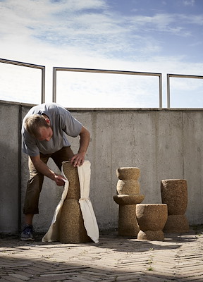 per hectare opneemt dan een bos of commercieel gewas, te binden met kalk wordt ‘hempcrete’ gemaakt. Geïnspireerd door de democratische ontwerpgedachte ontwikkelde ze een semi-modulair systeem, waarmee mensen wereldwijd aan de hand van ‘Hemp-it-Yourself’-handleidingen zelf meubels uit hempcrete kunnen maken.