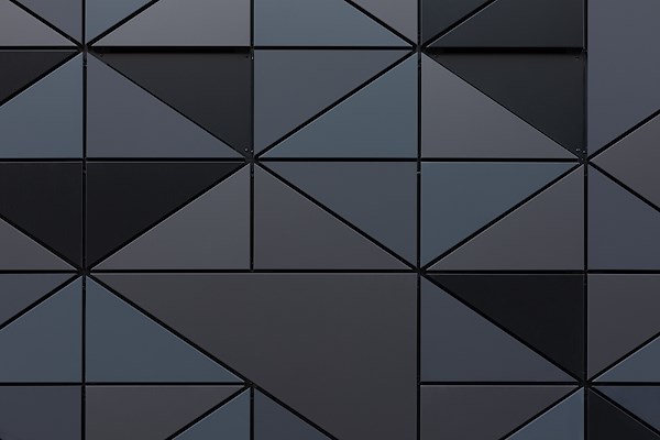 Boven de plint is de gevel bekleed met aluminium beplating in driehoekige vormen. Deze vormen verwijzen naar de stalen vakwerkconstructies en kranen uit de haven, meldt MoederscheimMoonen. De driehoeken worden op sommige plekken weggelaten zodat in de gevel diepte en een spel van licht en schaduw wordt gecreëerd. De driehoekige panelen zijn uitgevoerd in diverse glansgraden, wat onder invloed van daglicht de glinstering en de spiegeling van het water in de haven suggereert.