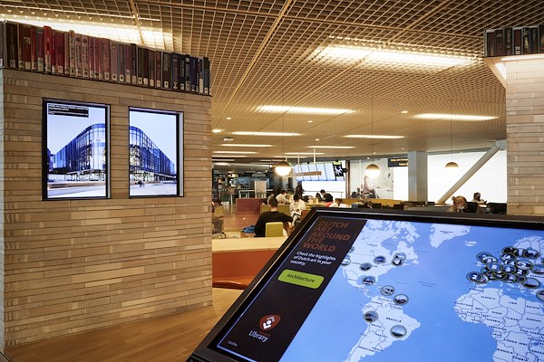 Sinds kort kunnen bezoekers van de Airport Library op Schiphol gebouwen van Nederlandse architecten in het buitenland bekijken. Op een groot scherm met een geografische applicatie kunnen de veelal buitenlandse gebruikers welke ‘Nederlandse’ bouwwerken er in hun land te zien zijn.
