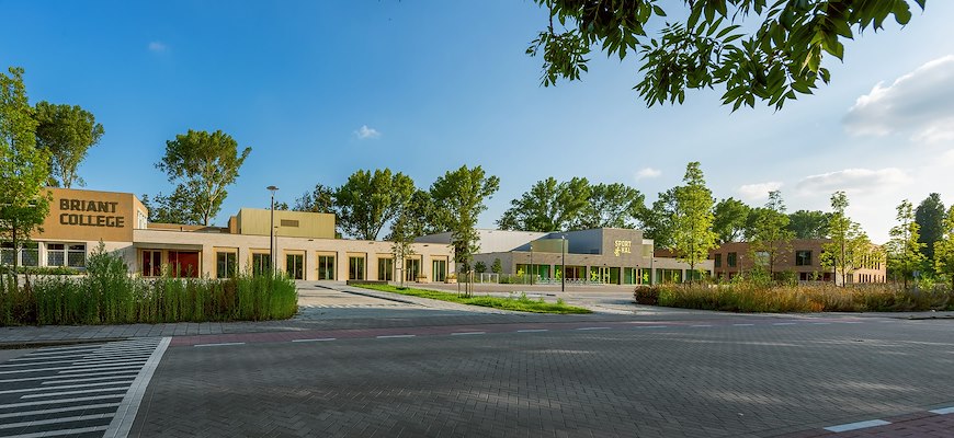 Het gebouw voor de middelbare school, het VSO Briant College, is gericht op het creëren van een even veilige als gastvrije omgeving. Op verschillende plekken maakt het gebouw verbindingen met de maatschappij. De winkel en het café met terras zijn praktijk- en oefenruimten voor de leerlingen, maar ook een ontmoetingsplek voor de wijkbewoners. Opdrachten van bedrijven en instanties uit de buurt worden uitgevoerd in het ‘Innovatielab’ en op de afdeling ‘Bouwen-Wonen-Interieur’.
