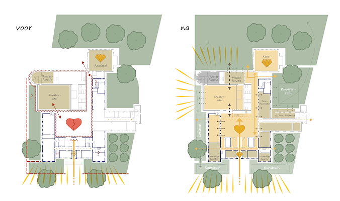 Het kloostergebouw moet onderdak gaan bieden aan een programma van cultuur – met onder andere een theater dat reeds in het gebouw is gevestigd –, sport en horeca. De opgave betreft een totaal oppervlakte van 4.315 m