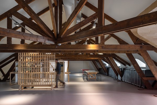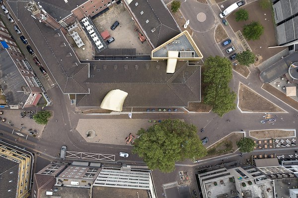 is het vroegere, monumentale postkantoor getransformeerd tot diens nieuwe functie. Opvallend element is het sculpturale ‘kunstvenster’ dat uitsteekt vanuit het dak.