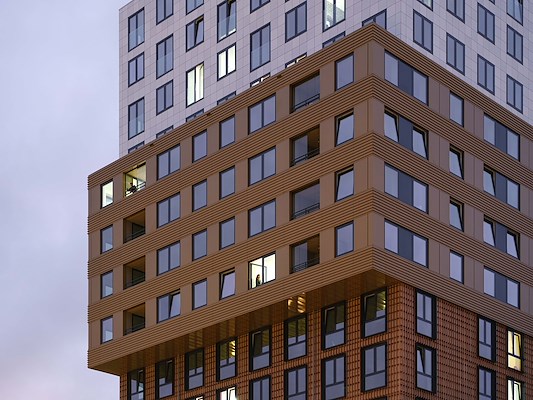 Woontorens met golvende gevels in vezelversterkt beton