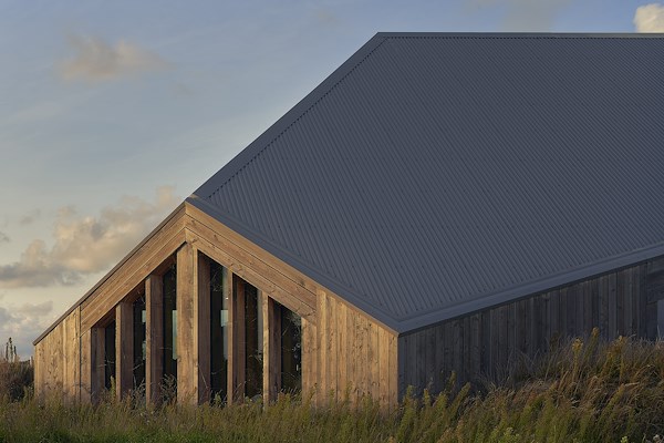 ontworpen als een ‘nest’ in het landschap van de zeepolder Waalenburg. Het gebouw en de bijbehorende buitenruimte worden tegen weer en wind beschermd door typische Texelse aardwallen, de zogeheten tuunwallen.