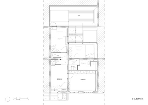 In de huidige indeling, alsook in de overgebleven ‘sporen’, is het oorspronkelijke gebruik van het huis af te lezen. De zonnige, in grootte variërende kamers hebben ieder hun eigen sfeer. De oude hoofdstructuur is weer zichtbaar en de nog in tact gebleven oorspronkelijke elementen hebben een passende plek gekregen in het nieuwe interieur.