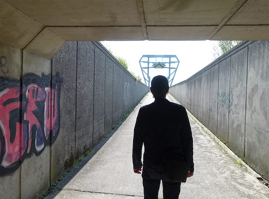 Onder snelweg A7 strekt zich ter hoogte van afslag 29 bij Drachten een fietserstunnel. Op dit ontmoetingspunt van voorbijgangers met verschillende snelheden is een constructie naar ontwerp van