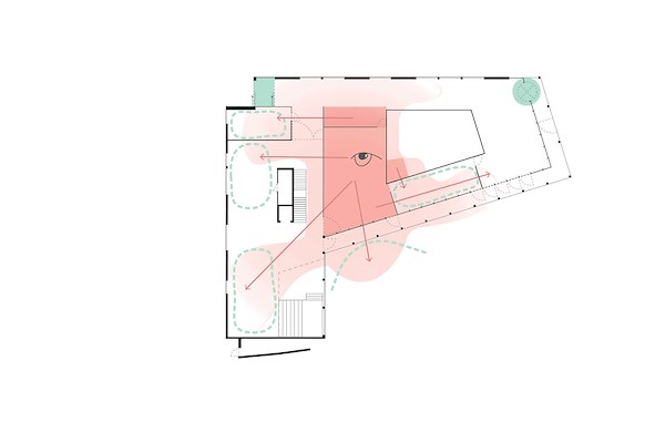 Het bureau heeft een gebouw uit twee paviljoenachtige houten volumes ontworpen, die het in een L-vorm heeft gepositioneerd. Ze scheiden een parkeerplaats van de historische tuin van Huis Hellemans, een villa in neo-Vlaamse renaissancestijl. Deze tuin functioneert nu als een rustige plek voor lezen en reflecteren, aldus de architecten.